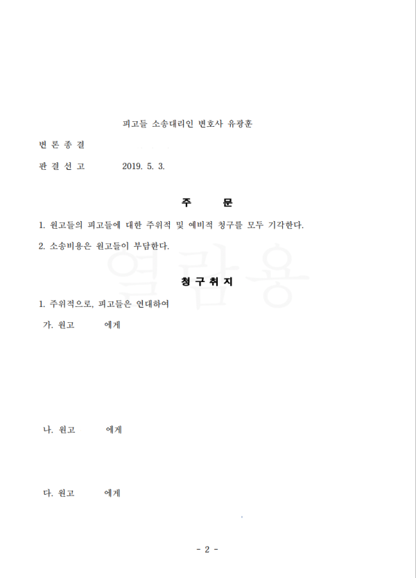 성공사례는 실제 판결문으로 말씀 드립니다.