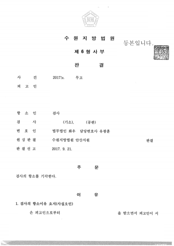 형사 - 무고죄 (무죄판결) (실제판결문 첨부) 페이지 정보 법무법인시우 작성일21-04-04 목록 본문 성공사례는 실제 판결문으로 말씀 드립니다. 제1심. 무죄판결 선고 제2심. 무죄판결 선고 유광훈 변호사 이 업무는 위 변호사가 담당하였습니다. 목록