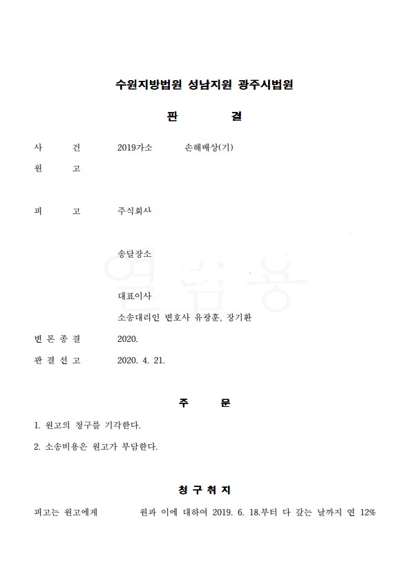 피고를 대리하여 전부승소판결 받았습니다.