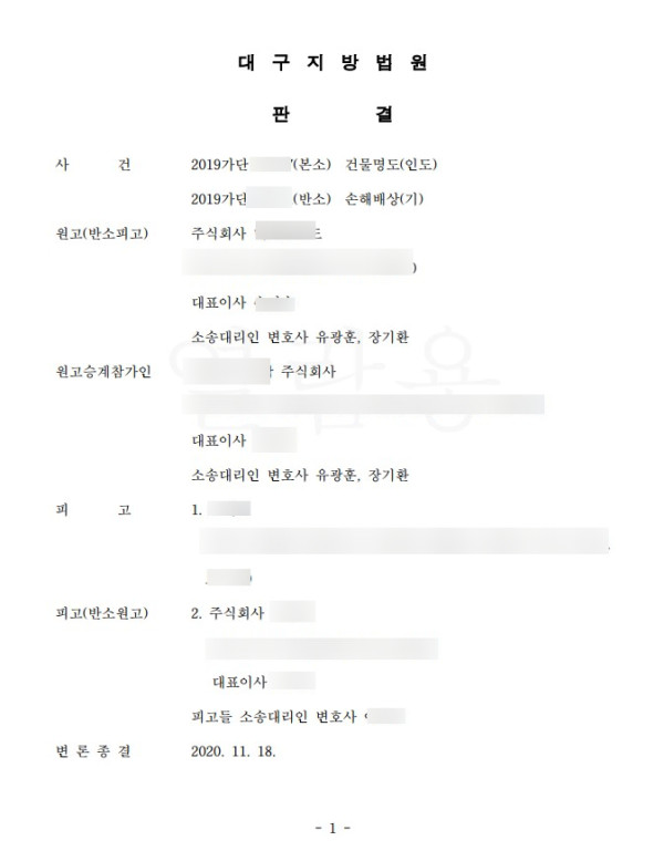 민사 - 건물인도 성공사례 (실제판결문 첨부)