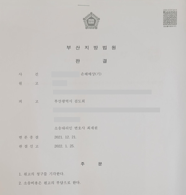 의뢰인은 법무법인 시우(부산 사무소)를 선임하였고, 1심 재판이 진행되었습니다. 결국, 상대방의 청구는 모두 기각되었고,