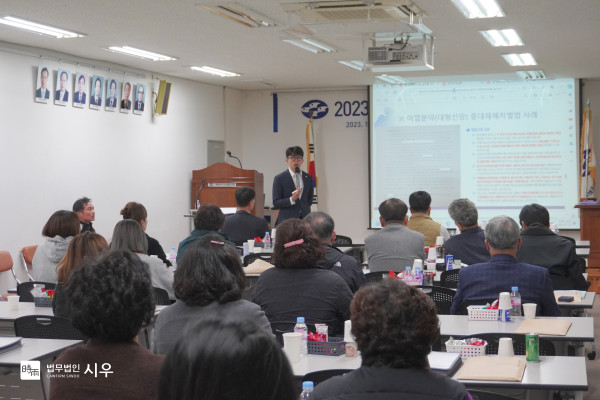 법무법인 심환 변호사는 통영/삼천포/부안 수산업협동조합에서 수산업자들을 대상으로 '중대재해처벌법'을 주제로 강의하였습니다.
