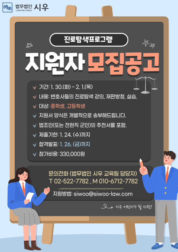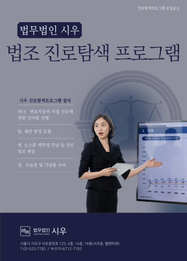 법무법인 시우에서 제3기 중고생 진로탐색프로그램 지원자를 공개 모집합니다.